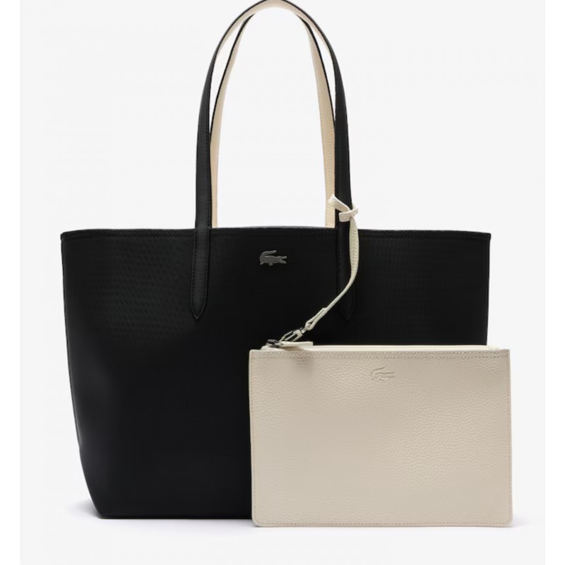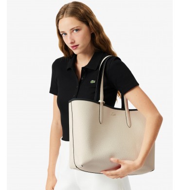 Ce sac cabas réversible porté épaule se distingue par ses deux couleurs contrastées. Embossé d’un effet grainé sur une face et d'un effet Petit Piqué, matière signée Lacoste empruntée au polo Original L.12.12 sur l'autre, il peut contenir un ordinateur 15 pouces et intègre une pochette amovible.